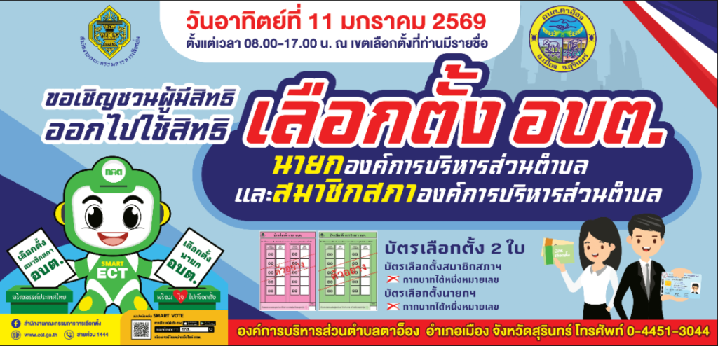 - ซื้อบัตรเลือกตั้ง (สำหรับใช้ในการเลือกตั้ง สถ. และผถ. องค์การบริหารส่วนตำบลตาอ็อง) โดยวิธีเฉพาะเจาะจง ,--วันที่ 24 ธันวาคม 202568129494335, เฉพาะเจาะจง, ประกาศรายชื่อผู้ชนะการเสนอราค […]