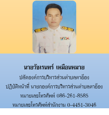 - ประกาศองค์การบริหารส่วนตำบลตาอ็อง เรื่อง การขยายกำหนดเวลาดำเนินการตามพระราชบัญญัติภาษีที่ดินและสิ่งปลูกสร้าง พ.ศ. 2562 ประจำปี พ.ศ. 2569 ,--วันที่ 28 พฤศจิกายน 2568